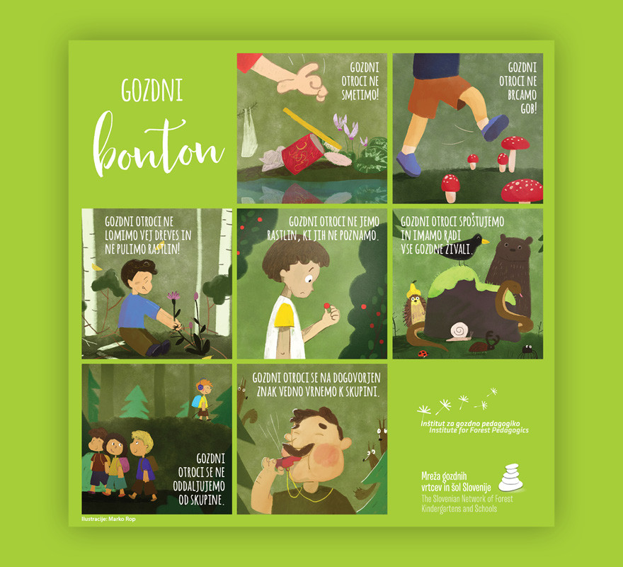 Za prve korake v gozd, potrebujemo tudi gozdni bonton. Na povezavah najdete dve obliki zloženke Gozdni bonton za otroke. Tiskate jih obojestransko.