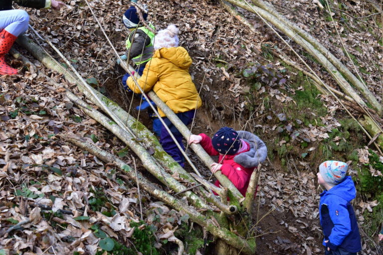 Pri igri v gozdu razvijajo svojo domišljijo in svojo fantazijo. Naravne igrače se spremenijo v karkoli, veje postanejo cepini za plezanje, dvojne sablje, trenutno se v gozdu išče trojna sablja. Štor postane prestol.